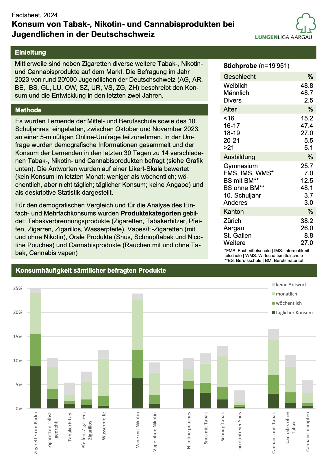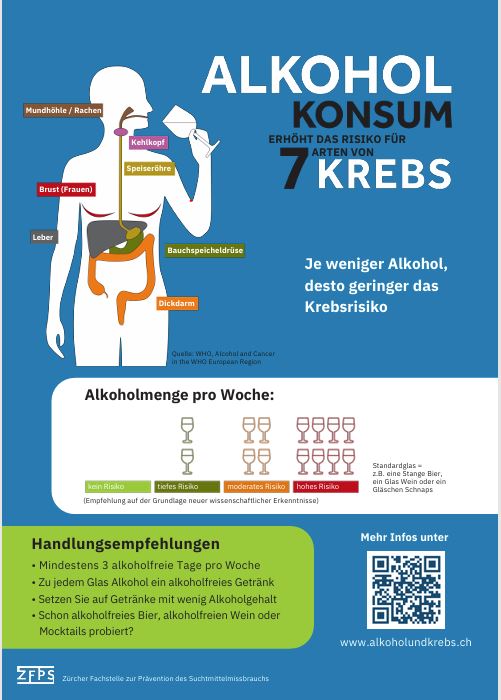 Alkohol und Krebs Sucht im Alter Bodytuning-check ZFPS – Zürcher Fachstelle zur Prävention des Suchtmittelmissbrauchs Die ZFPS ist als thematisch spezialisierte Fachstelle in der Prävention des Suchtmittelmissbrauchs tätig. Dabei legt sie einen Schwerpunkt auf Alkohol, bestimmte Medikamente sowie Tabak- und nikotinhaltige Produkte. Sie entwickelt und lanciert zielgruppenspezifische Projekte, führt Weiterbildungen durch, leistet Öffentlichkeitsarbeit und kooperiert eng vernetzt mit verschiedenen Akteuren auf dem Gebiet der Public Health. Die ZFPS gehört zum Verbund der Stellen für Suchtprävention im Kanton Zürich: suchtpraevention-zh.ch. Alkoholmissbrauch Unsere Angebote » Medikamentenmissbrauch Unsere Angebote » Tabakprävention Unsere Angebote » Die rauchfreie Lehre erstrahlt in neuem Gewand «zackstark – nikotinfrei durch die Lehre» präsentiert sich im neuen Design. Wirksam, echt und stark. Denn nicht nur Rauchen macht abhängig und ist ein grosses Gesundheitsrisiko – auch neue Nikotinprodukte wie Snus, E-Zigaretten und Vapes. Durch den neuen Auftritt sind sämtliche Nikotinprodukte bei «zackstark» eingeschlossen. Das Projekt unterstützt Ausbildungsbetriebe dabei, ihre Lernenden für ein Leben frei von Nikotinprodukten zu motivieren. Wir freuen uns sehr über den frischen Auftritt. Vertiefte Einblicke in das Projekt finden Sie auf der Webseite. Sind die neuen E-Nikotinprodukte Fluch oder Segen? Immer mehr Jugendliche vapen, neue E-Nikotinprodukte sind für Rauchende nach heutigem Wissenstand weniger schädlich als herkömmliche Zigaretten. Sind die neuen Produkte also Fluch oder Segen? Dieser Frage gehen die Suchtpräventionsexpertin Dominique Lorandt und der Hausarzt und Forscher Reto Auer nach. Lesen Sie den Beitrag auf der Website der Stellen für Suchtprävention im Kanton Zürich und erfahren Sie mehr über Risiken und Chancen von E-Nikotinprodukten und was Sie zur Prävention beitragen können. » Hier geht es zum Interview Rückblick Welttag ohne Tabak Nikotinbeutel – verlockend verpackt, gesundheitlich bedenklichAm 31. Mai war der «Welttag ohne Tabak». Aus diesem Anlass haben wir eine Medienmitteilung veröffentlicht. Darin zeigen wir auf, wie die Tabakindustrie mit neuen Produkten wie Snus und Pouches den Rückgang beim Zigarettenkonsum kompensiert und weshalb der Jugendschutz unzureichend ist » Hier geht es zur Medienmitteilung laut & leise heisst nun stark. Wir haben den Auftritt unseres Magazins aktualisiert und ihm einen neuen Namen gegeben: Das «laut & leise» heisst nun «stark.» Weiterhin widmen wir jede Ausgabe einem Schwerpunktthema, beleuchten Hintergründe und stellen Angebote der Prävention vor. Die erste Ausgabe von stark. ist den Nikotinprodukten gewidmet. Insbesondere das Vapen hat zugenommen und wirft viele Fragen auf. Wir wünschen anregende Lektüre und freuen uns, wenn Sie unsere Angebote nutzen. Die Druckausgabe des Magazins kann im Kanton Zürich kostenlos abonniert werden, die Online-Ausgabe ist unbeschränkt abonnierbar. » Hier geht es zum Heft Der Alkoholkonsum erhöht das Risiko für 7 Arten von Krebs Die meisten Menschen wissen, dass Alkohol der Gesundheit schadet – aber nur wenige sind sich bewusst, dass er auch das Krebsrisiko erhöht. Gemäss der WHO steigt das Krebsrisiko mit der Menge des konsumierten Alkohols. Eine absolut risikofreie Alkoholmenge gibt es jedoch nicht. Es ist deshalb wichtig, sich dieser Gesundheitsgefahren bewusst zu sein und den Alkoholkonsum zu mässigen. Mehr Infos unter www.alkoholundkrebs.ch Wollen Sie uns bei der Verbreitung dieser wichtigen Gesundheitsinformation helfen? Wir würden uns freuen, wenn Sie den Flyer auslegen und/oder das Plakat für Innenräume (42 x 59.4cm) aufhängen könnten. Beide Materialien sind kostenlos bestellbar. Der überarbeitete NicotineFreeCoach ist live! Gute Neuigkeiten! Unser NicotineFreeCoach wurde überarbeitet und erweitert – und ist jetzt live! Das kostenlose WhatsApp-Programm unterstützt dich dabei, deinen Konsum von Nikotin zu reduzieren oder ganz damit aufzuhören. Neu deckt der Coach nicht nur herkömmliche Zigaretten ab, sondern unterstützt dich auch bei Vapes, E-Zigaretten und Snus. Wie funktioniert’s?Du erhältst regelmässig motivierende Nachrichten, praktische Tipps und wissenschaftlich fundierte Infos – direkt auf WhatsApp. Ganz unkompliziert, anonym und kostenlos. Jetzt starten und deinen Weg in ein nikotinfreies Leben beginnen! »Hier geht es zur Anmeldung laut & leise zum Thema: Alkohol Alkohol ist allgegenwärtig. Viele Menschen konsumieren ihn risikoarm als Genussmittel – gleichzeitig gibt es kein Suchtmittel in der Schweiz, das mehr Probleme im sozialen Bereich verursacht. Und auch die gesundheitlichen Folgen sind nicht zu unterschätzen. Das Magazin beleuchtet diese Zusammenhänge und zeigt auf, wo die Prävention ansetzt. Mit konkreten Angeboten für Schulen und andere Settings Das laut & leise können Sie als Print oder digital abonnieren unter suchtpraevention-zh.ch/magazin Mach mehr weniger Die Stellen für Suchtprävention im Kanton Zürich bieten verschiede Selbsttests u.a. zum Umgang mit Alkohol, Nikotin, Medikamenten, Cannabis oder Kokain. Mit den Selbsttests kann das eigene Konsumverhalten eingeschätzt werden. Und man erfährt, was bei riskantem Konsum hilft. Die Freundetests sind für Menschen, die sich um den Konsum von Nahestehenden Sorgen machen. Man erfährt, ob die Sorgen nötig sind und wie man helfen kann. »Hier geht es zu den Selbsttests Sendung zum Thema Alkoholkonsum Die ZFPS war zu Gast bei Gesundheit Heute auf SRF 1. Sven Anders hat Fragen zum Umgang mit Alkohol beantwortet: Wie viel Alkohol wird empfohlen? Wann merkt man, dass man ein Alkoholproblem hat? Wo bekommt man Hilfe? » Hier geht es zum Interview » Hier geht es zum Beitrag auf Social Media Interview in SCHWEIZER FAMILIE Faktenblatt Ketamin für Fachpersonen und Konsumierende Der Konsum von Ketamin birgt Risiken – welche erfahren Sie in die